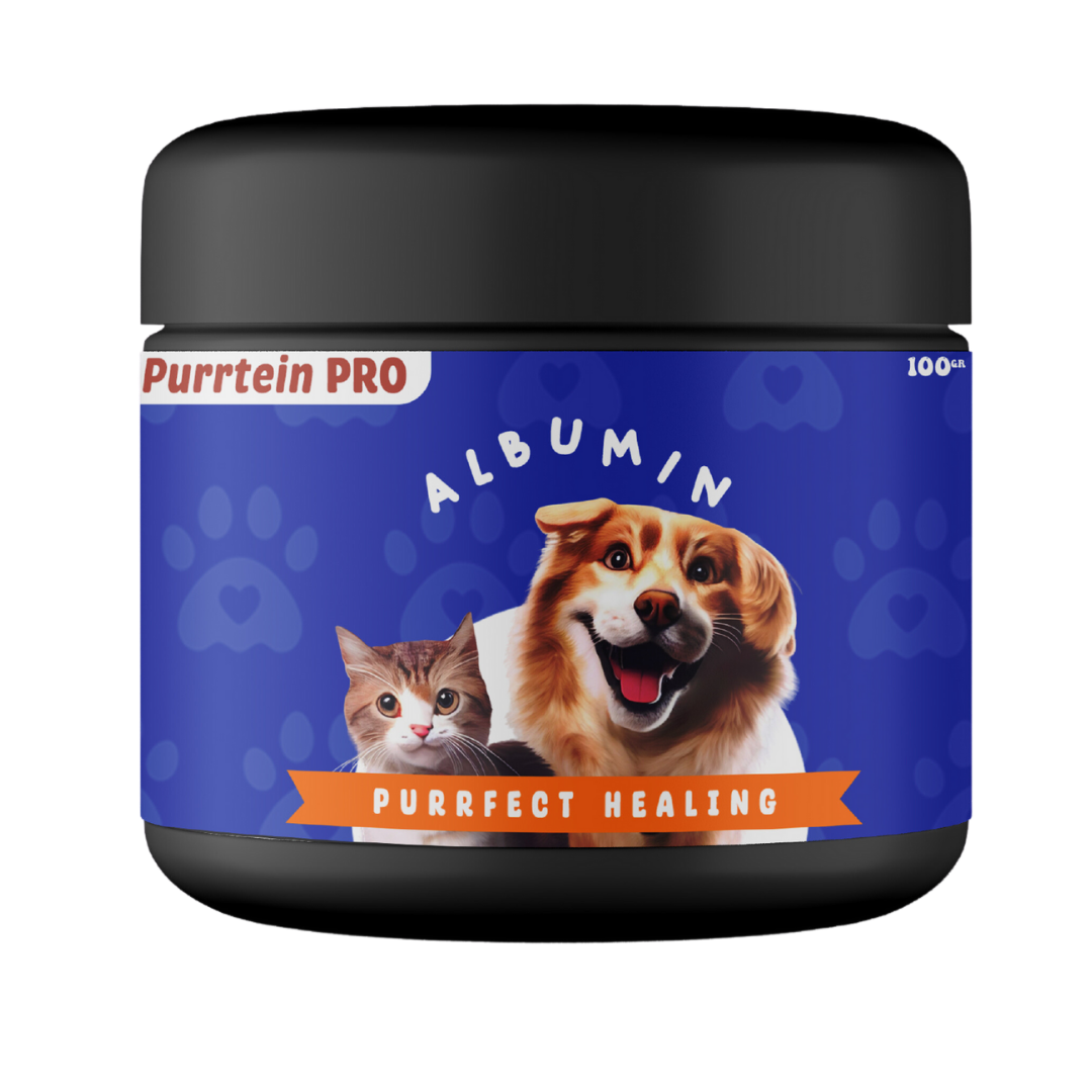 Purrtein Pro, Play Purrfect. Feed supplement vitamin derived from fish protein hydrolyzate with a complex amino acids, collagen, albumin and calcium. It also can provide umami flavor and enhance the taste of any food. The synergistic impact of the nutrients together creates a smell and flavor that both cats and dogs find appealing.